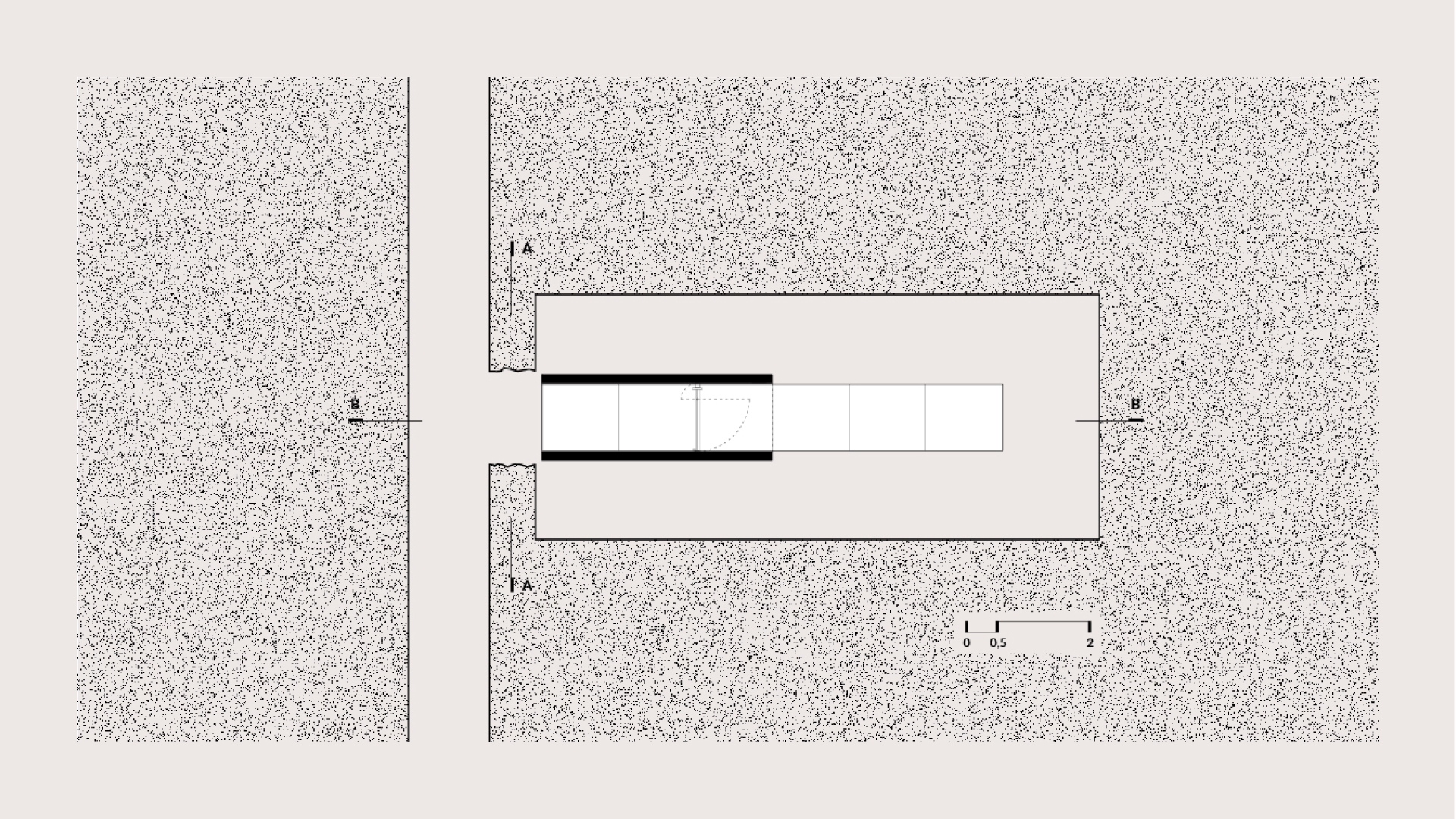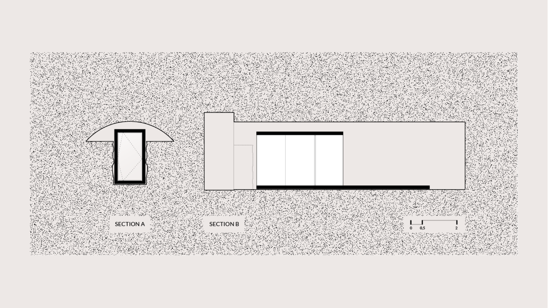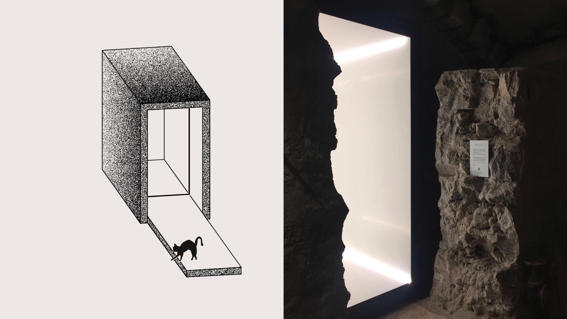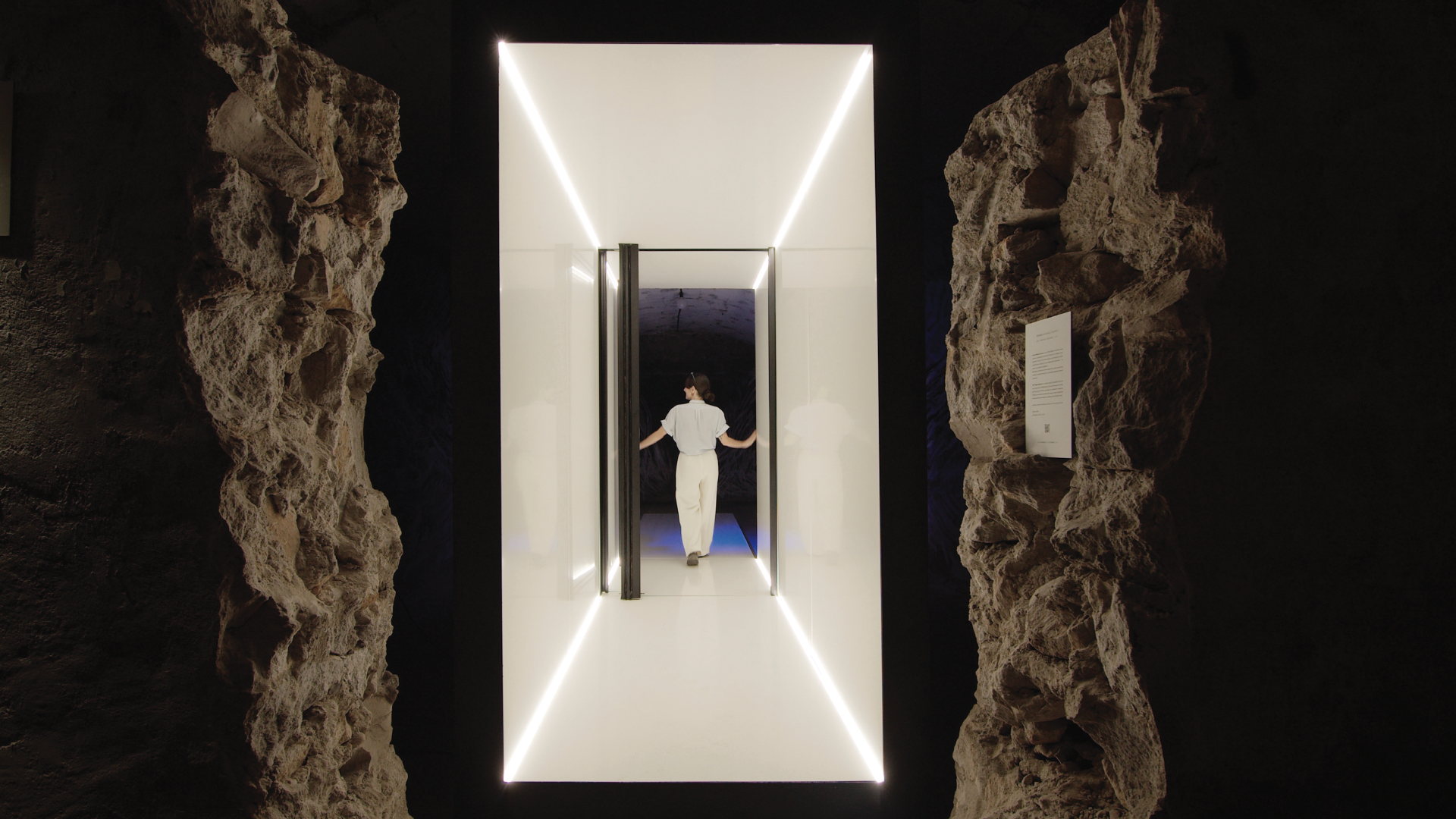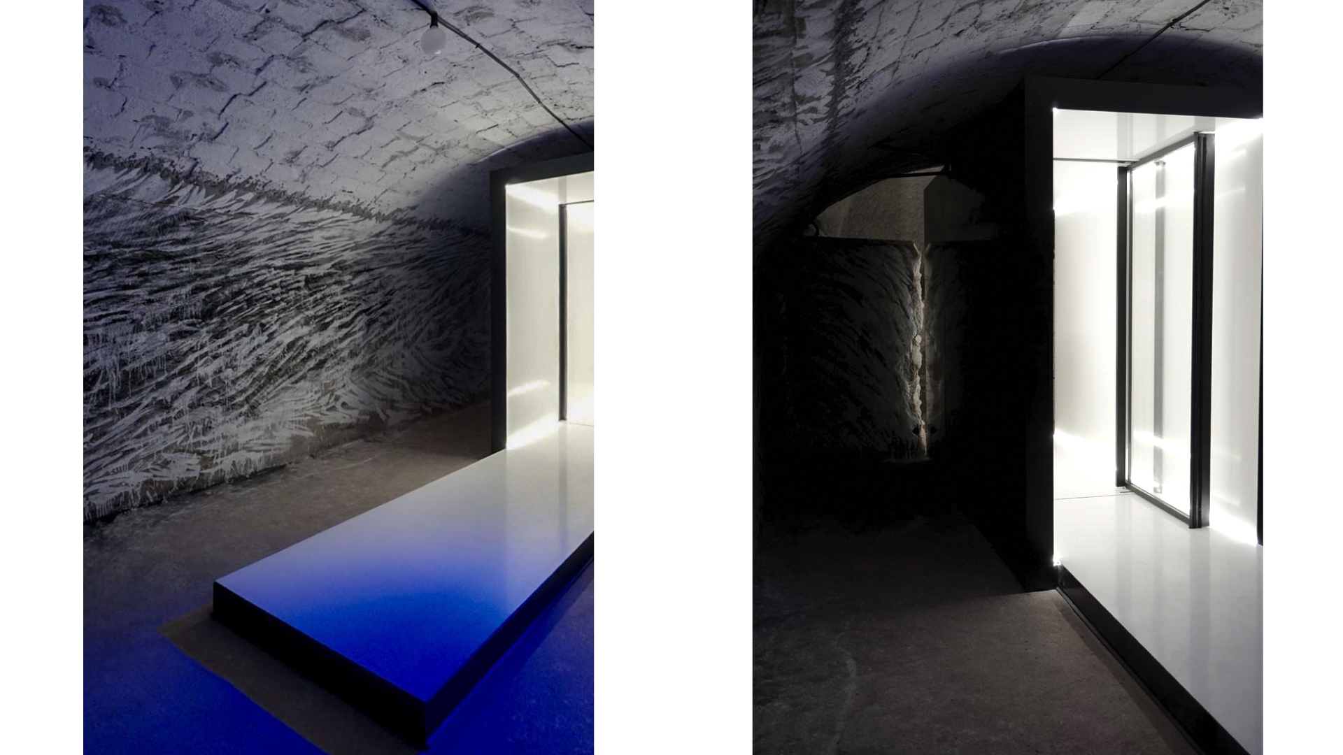 In the context of the exhibition we designed a portable spatial composition that acts as a contemporary ‘Primitive Hut’, a threshold between the inside and the outside. Publicly accessible, the installation integrates itself in any landscape and allows the viewer to pass through the minimal white tunnel towards a carefully selected framed view.